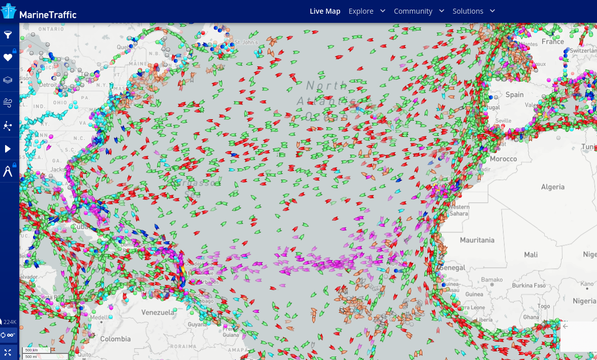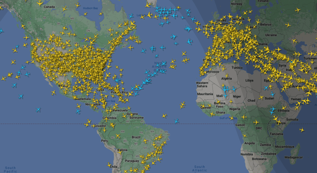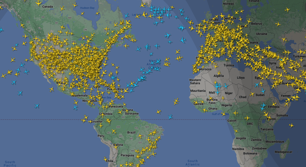 Eías está viajando ahora en avión. Va en uno de los avioncitos que se ven llegando a Santa Lucía, ahí, abajo y un poco a la derecha de Puerto Rico.