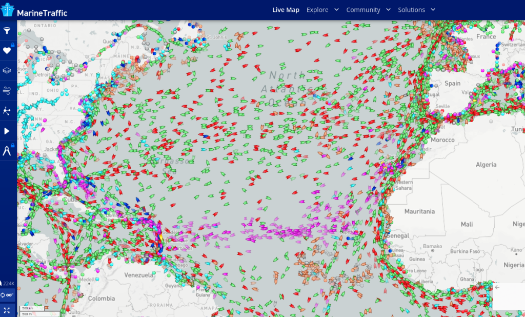 El barco con la suegra y la mujer de Elías es uno de los de color rosa casi en Santa Lucía. Los barcos de color rosa son cruceros, los otros son mercancías, petroleros, contenedores y esas cosas.