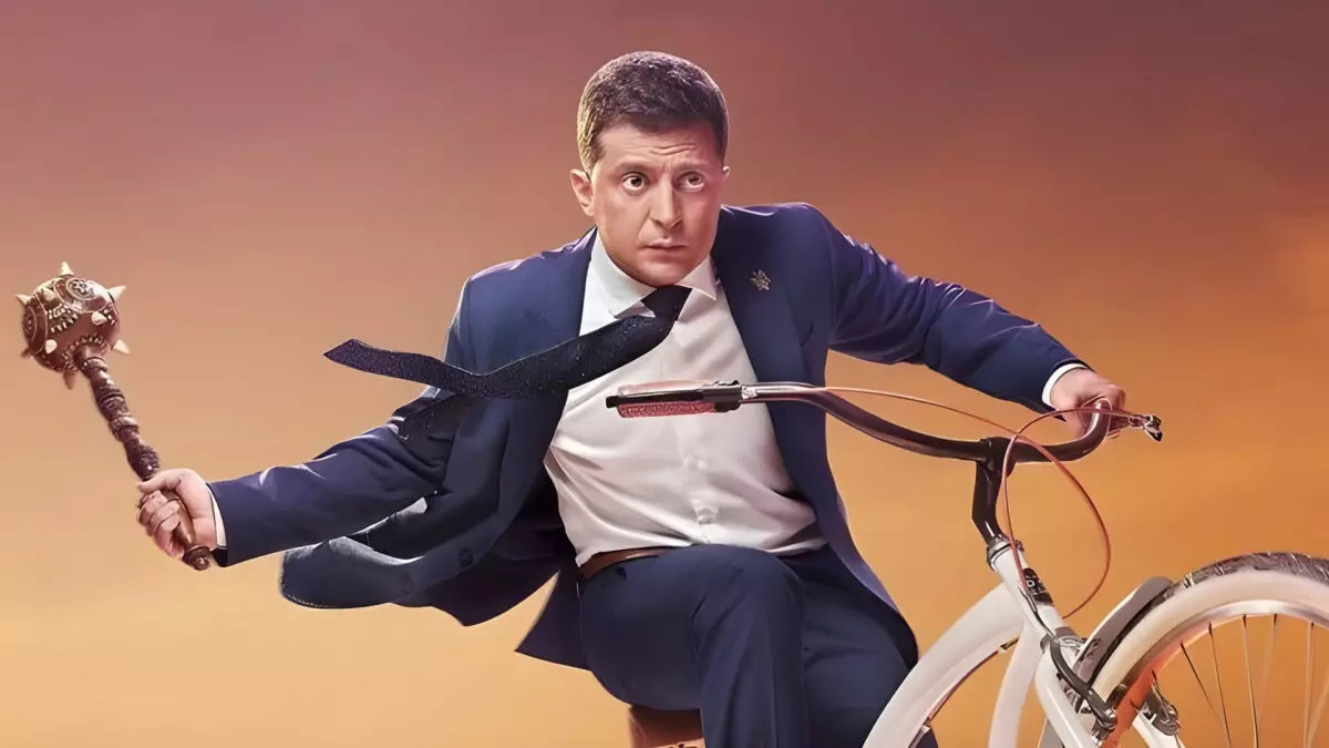 Para el bando de los buenos, han elegido a un cómico y le han colocado un jersey de color de semblanzas militares.
