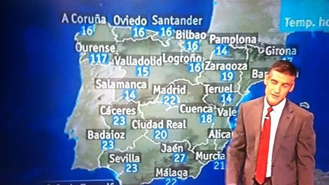 en el mapa de previsión meteorológica escriben y pronuncian en los idiomas locales algunos de los topónimos, mientras que otros los dejan escritos y los pronuncian en español. Por ejemplo, traducen a idioma local Gerona, La Coruña y Orense, pero dejan en español Bilbao (en vascuence Bilbo), Pamplona (en vascuence, aunque no sea vascongada, Iruña), Alicante (en valenciano Alacant) o Ibiza (en mallorquín/catalán/balear Eivissa), por ejemplo. Y otro tanto ocurre cuando cuentan la información de Europa y nos informan del tiempo previsto en Londres (no en London), en Moscú (no en Moskva), Múnich (no en München), etc. etc. etc.