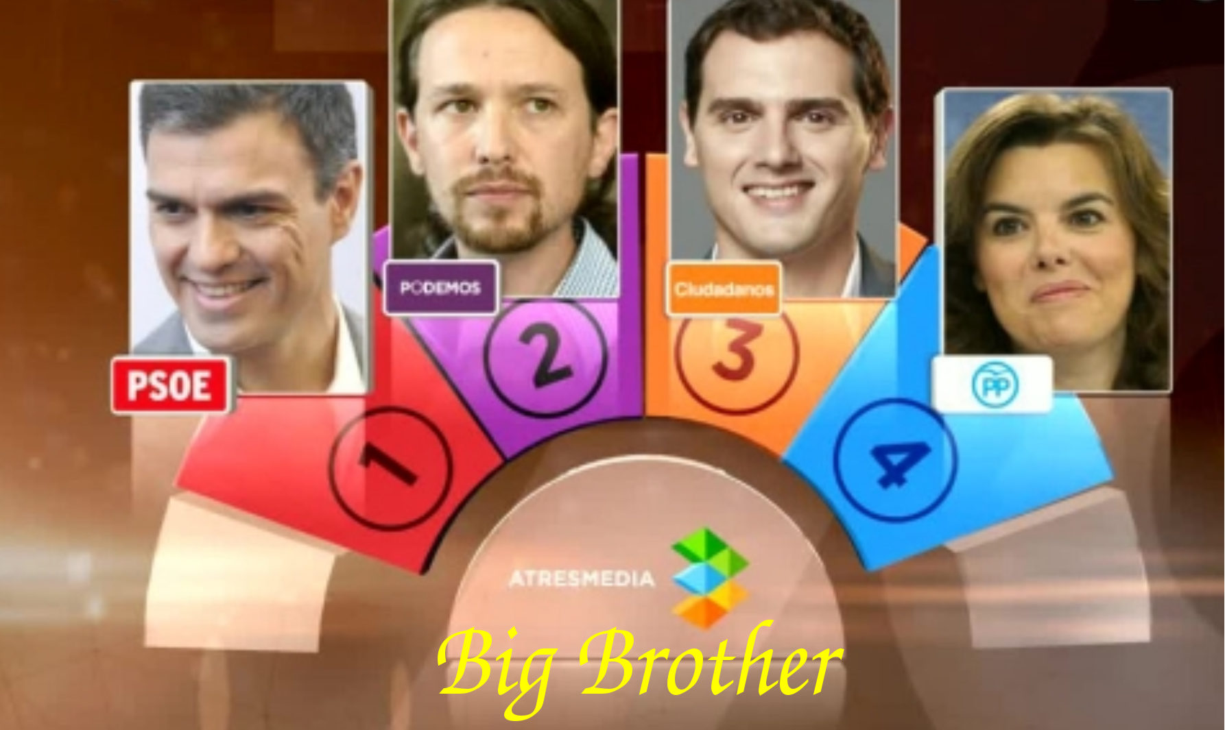 Finalmente el Big Brother de Orwell existe. Él ha decidido que UPyD, VOX, IU y otras muchas opciones desaparezcan de nuestras mentes. Él mismo se anuncia como «el debate decisivo del que saldrá El Ganador«. Él está tirando por la borda los programas electorales (¿hay?) porque aquí no cuentan. Sólo demagogia de mercadillo, izquierda-derecha y tu-más. No hace falta más maleta para la mierda viaje que nos van a dar.